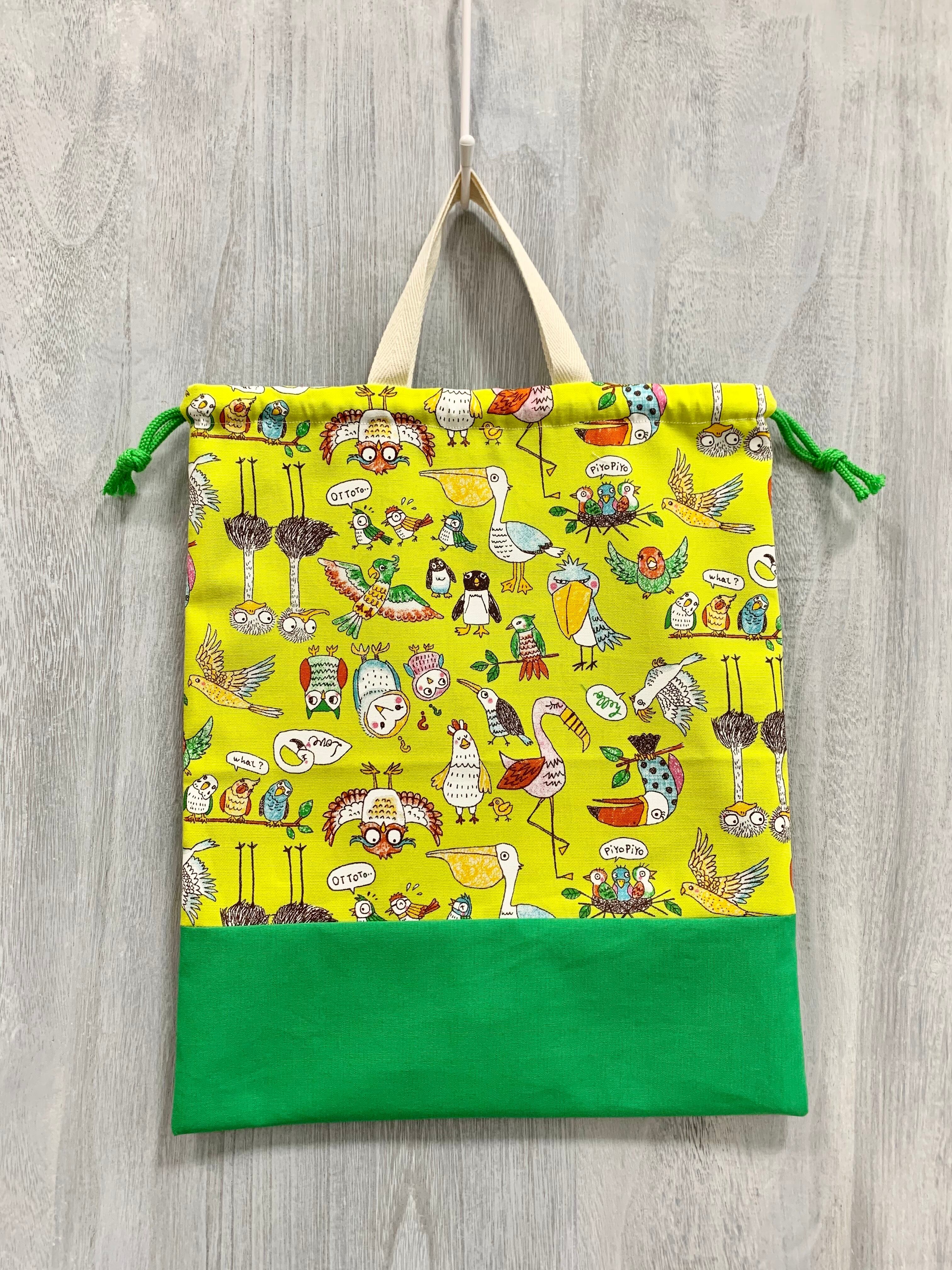 体操着入れ(持ち手付き巾着袋) トリ柄 グリーン